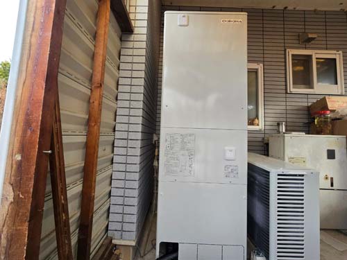 八潮市 コロナ自然冷媒CO2家庭用ヒートポンプ給湯機 ヒートポンプユニットCHP-DZ451K エコキュート交換工事