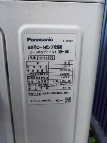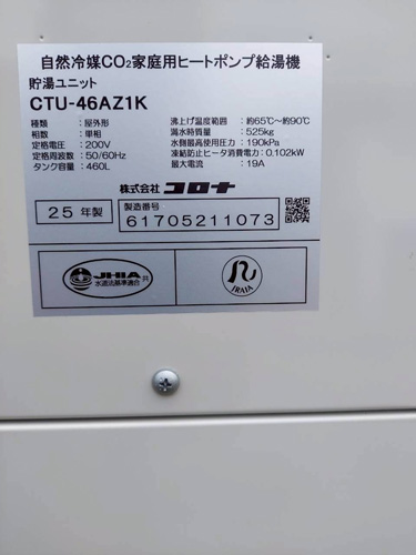 熊谷市妻沼 パナソニック家庭用ヒートポンプ給湯機ヒートポンプユニット(屋外用)HE-PL60E→コロナ自然冷媒CO2家庭用ヒートポンプ給湯機ヒートポンプユニットCHP-DZ601K、貯湯ユニットCTU-46AZ1K エコキュート交換工事