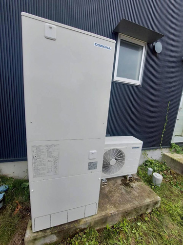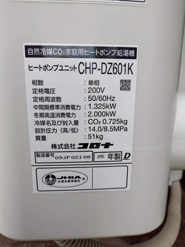 熊谷市妻沼 コロナ自然冷媒CO2家庭用ヒートポンプ給湯機ヒートポンプユニットCHP-DZ601K、貯湯ユニットCTU-46AZ1K エコキュート交換工事